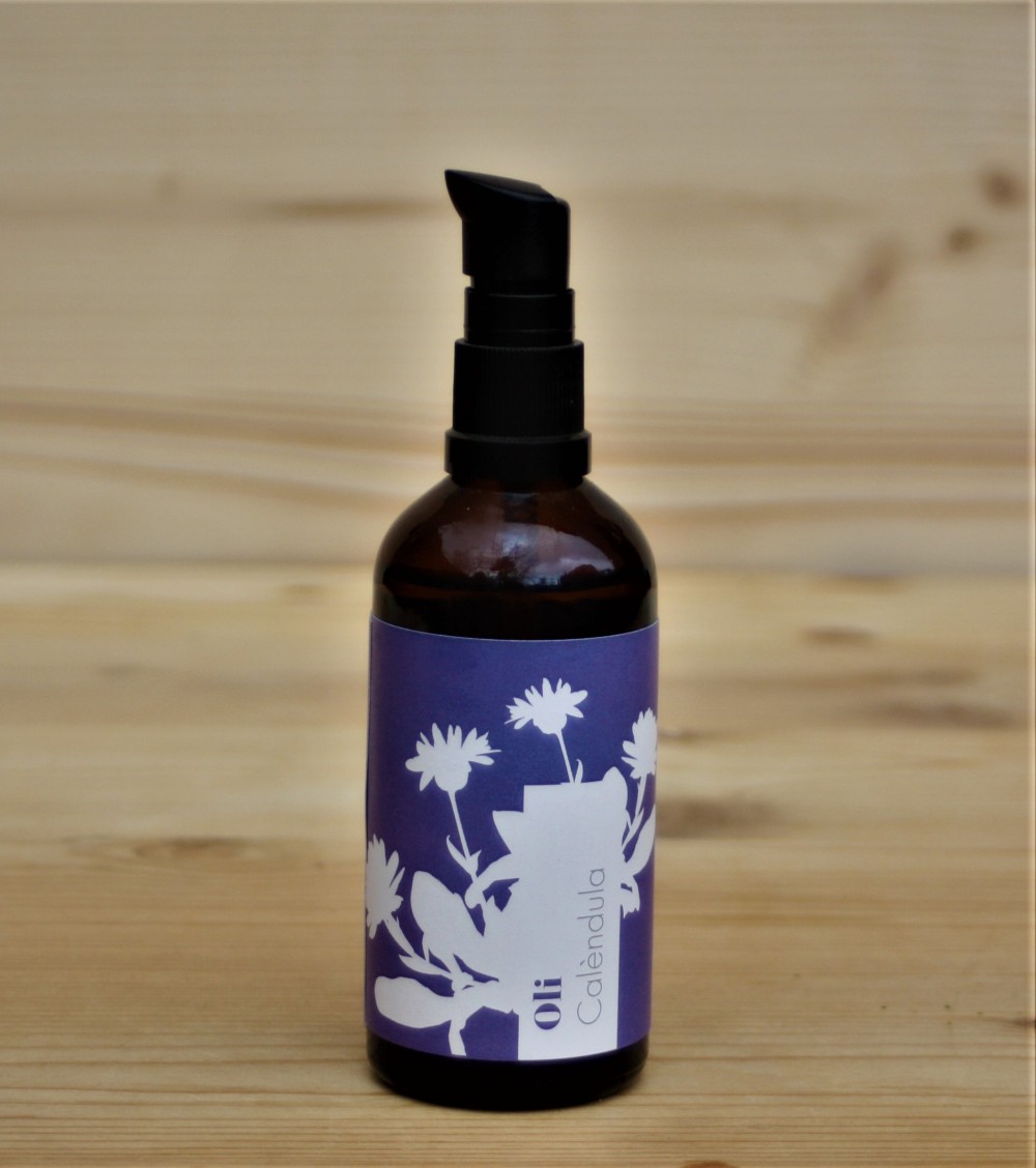 Oli regenerador dels teixits. Ideal per a pells seques i atòpiques. Indicat per a cicatrius, contusions, cremades, i picades d’insectes. Bàsic per a la pell dels nadons i és recomanable aplicar després del bany. Així mateix, evita la dermatitis provocada pels bolquers. Macerat de flor de calèndula officinalis amb vitamina E.